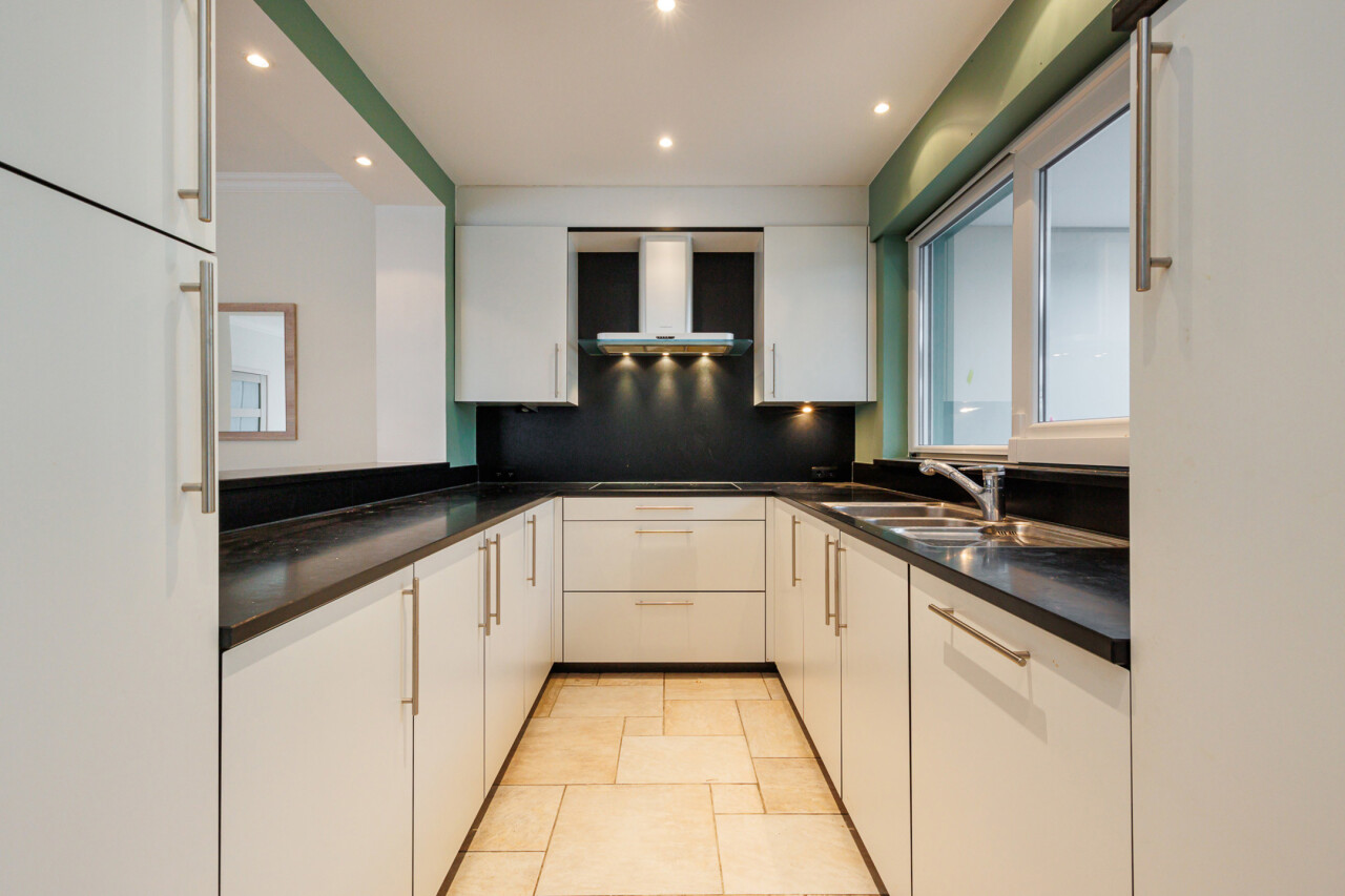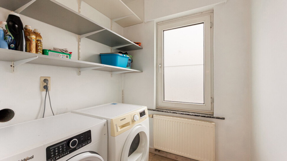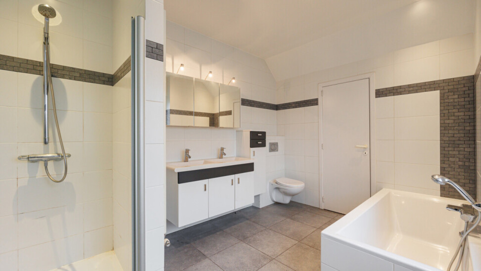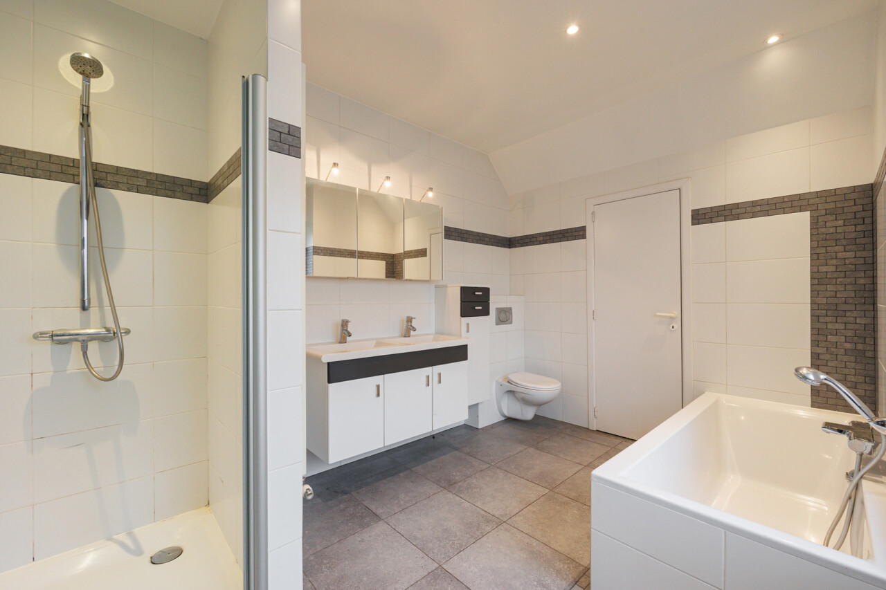 - 1e verdieping: nachthal, 2 slaapkamers, badkamer (ligbad, douche, dubbele lavabo, toilet), washok, technische ruimte