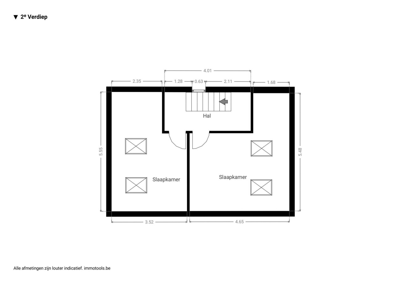 - 2e verdieping: nachthal, 2 slaapkamers